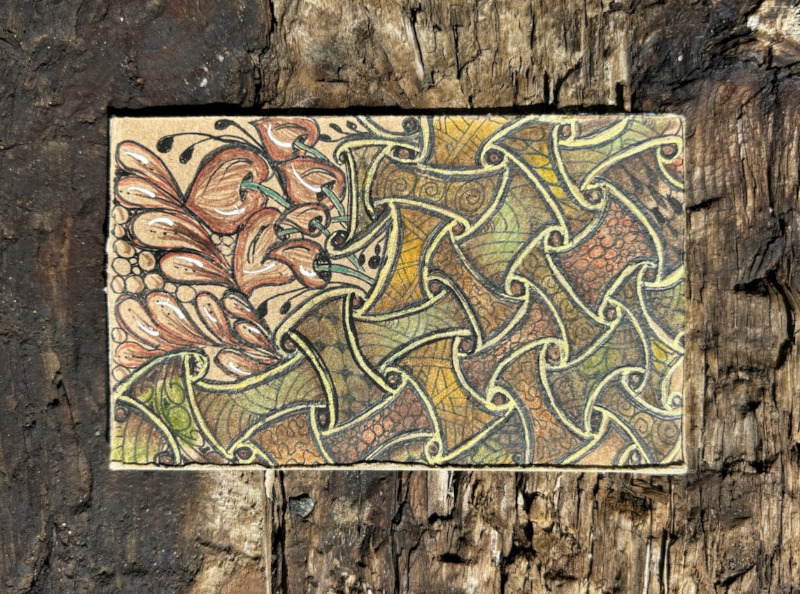 Which means it was too windy, cold, and rainy to work in the garden. Even the cats decided to take a break. So I completed another tangle.