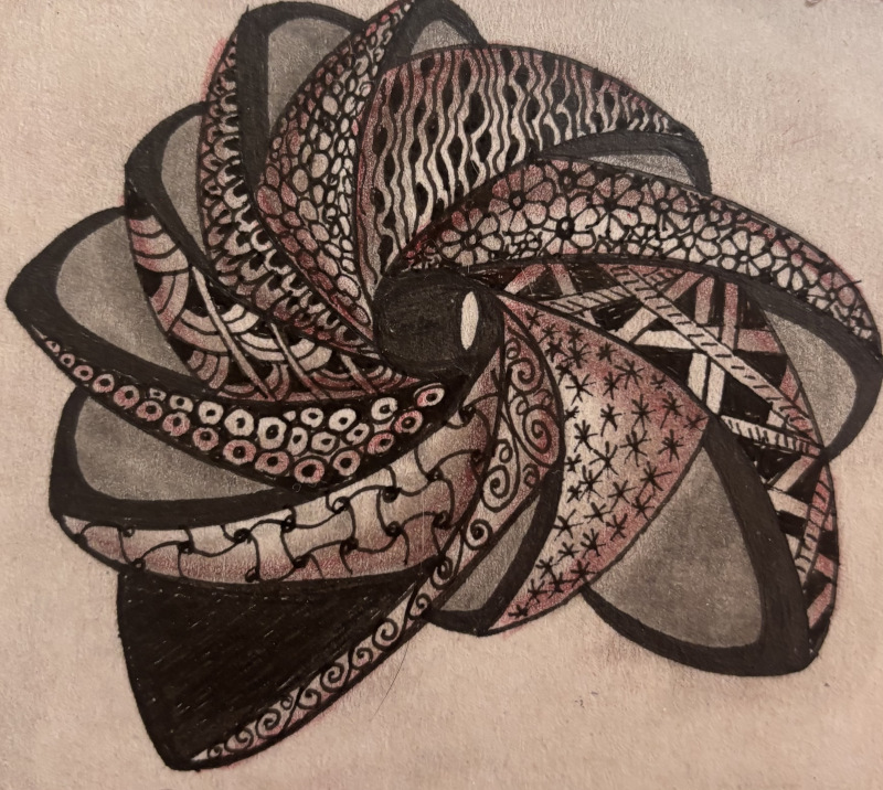 I found these inter-locking tangles to be an interesting puzzle to draw.